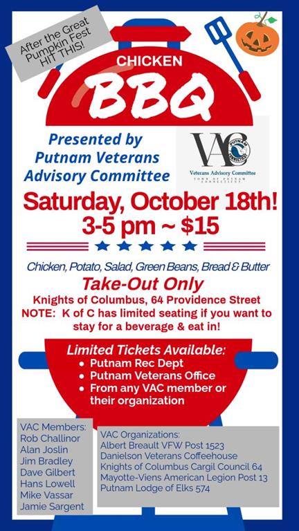 VAC Take-Out Chicken BBQ Saturday Oct 18, 3-5pm