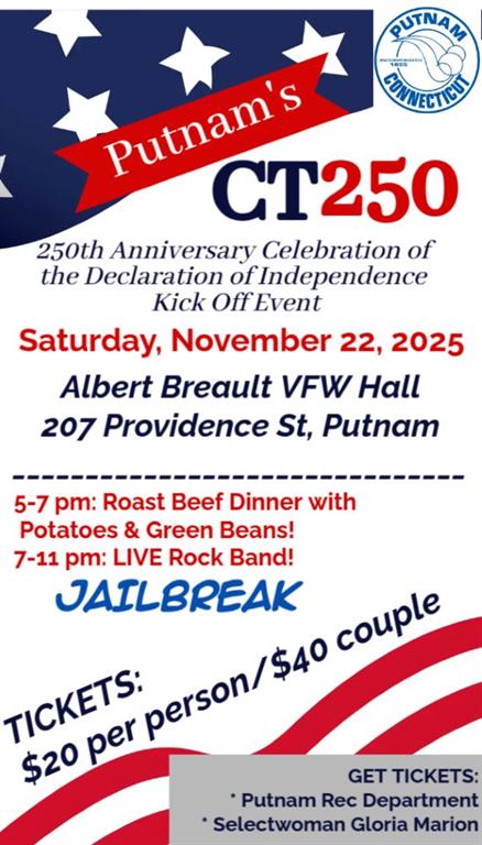 Putnam's CT250 Dinner/Dance FUNraiser, Saturday November 22, 5 pm